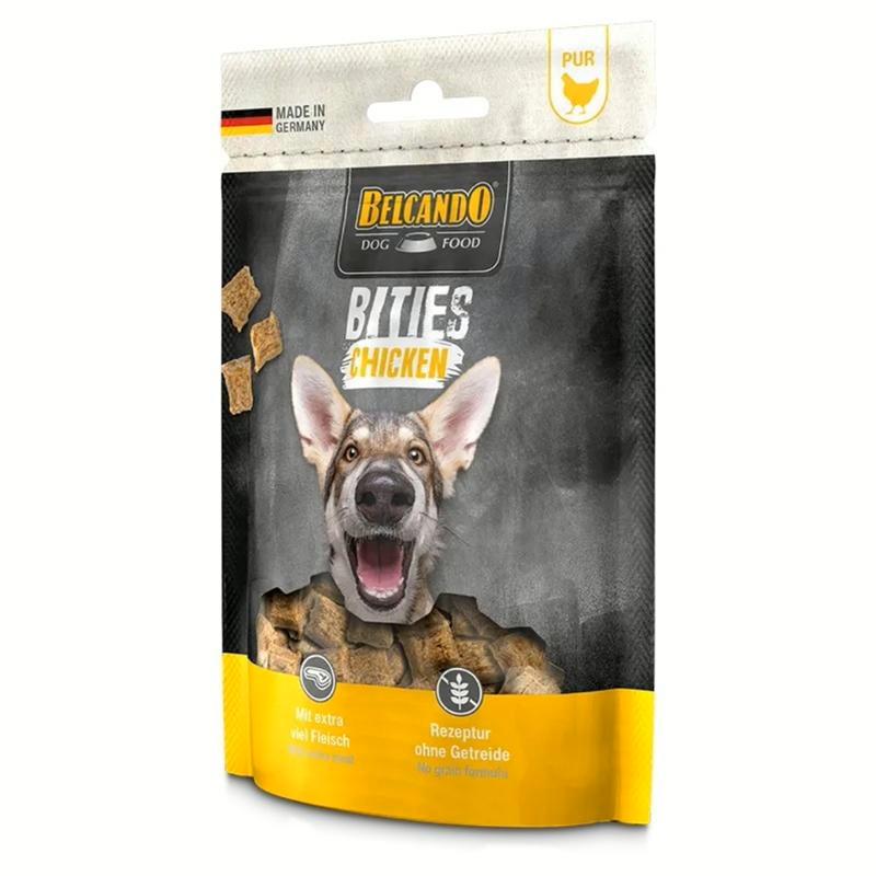Ofrecer los Belcando Snack Bities de Pollo como premio entre comidas. Ajustar la cantidad de alimento diario según los snacks suministrados y asegurar siempre que el perro disponga de agua fresca y limpia.